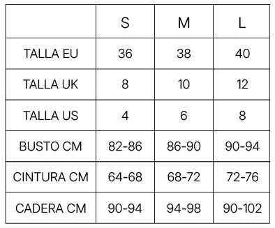 Ponemos a tu disposición nuestra Guía de Tallas para ayudarte a encontrar tu mejor opción. Si tienes dudas, estaremos encantadas de asesorarte personalmente.